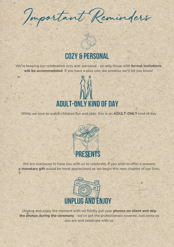 With hearts full of love, we invite you to our wedding day! See our wedding details With hearts full of love we invite you to our wedding day See our wedding details The Countdown to "i Do" CEREMONY 1:30 PMImmaculate Heart of Mary (Diocese of Antipolo)Daang Bakal Road, Antipolo RECEPTION 4 PMDelle SorelleEast Riviera Subdivision, Taytay WE CAN'T SAY i DO WITHOUT YOU! Your presence means the world to us! Let us know if you’ll be joining so we can save you a seat! RSVP Our Love Story in Pictures See Our gallery